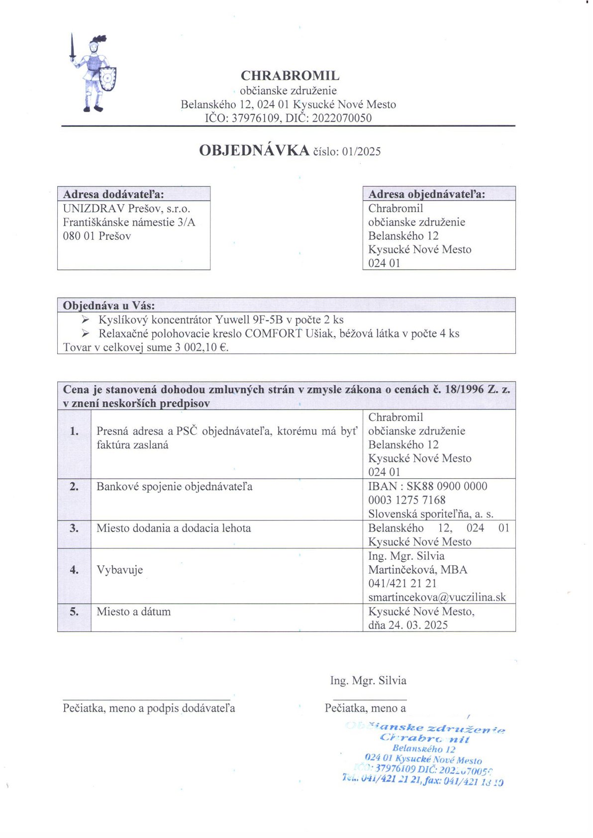 Objednávka 1_25 UNIZDRAV Prešov